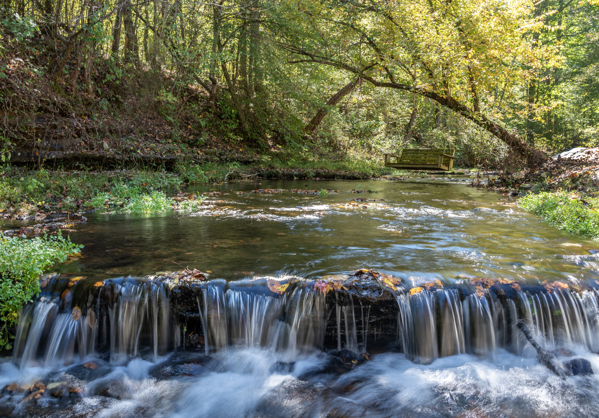 Dip your toes and refresh your spirit in the coll, crystal clear limestone creek just outside your cabin.