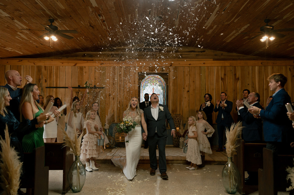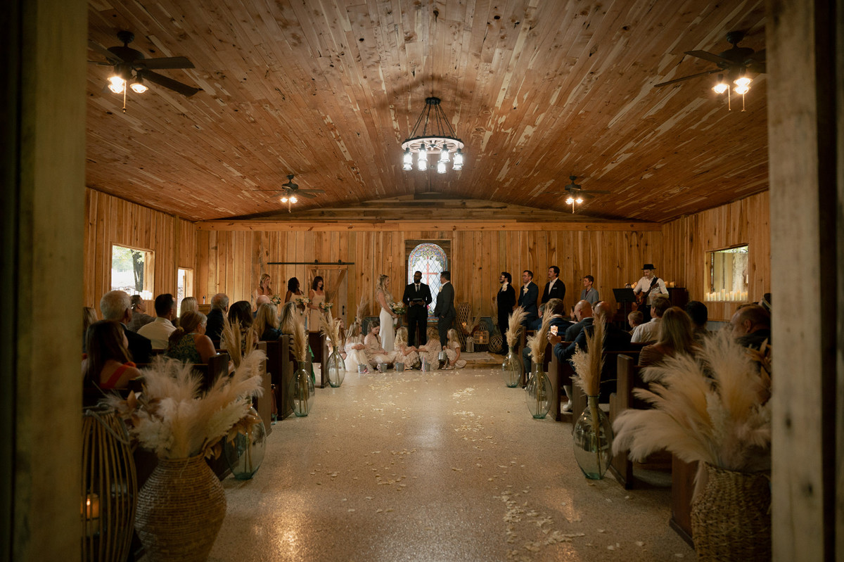 With seating that can comfortably fit up to 200 guests, our Rustic Haven chapel provides the perfect setting for your “I Dos.” The century old pews, native hardwood construction, and hand-made stained glass provide a warm, intimate setting for your most important day.